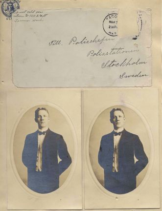 Han dömdes bland annat för vit slavhandel i USA och anledningen till att polisen i Stockholm intresserar sig för honom är att han år 1915 uppges ha bosatt sig i Ribby i Västerhaninge. Han ska bland annat driva en dansbana på somrarna. Det finns också ett längre brev från en pappa, A.J. Englund i Tacoma i USA, som beskriver Dahlströms verksamhet och hans samröre med pappans döttrar Edna och Hilda Englund.
