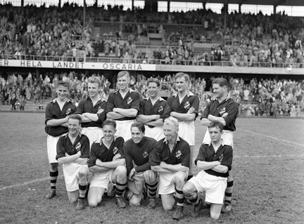 Råsundastadion. Grupporträtt av AIK:s fotbollslag