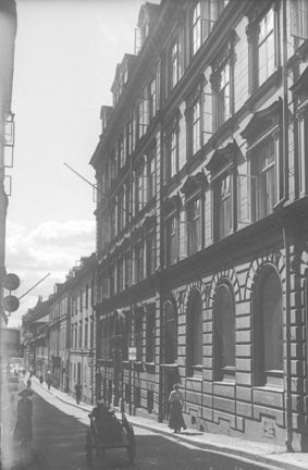 Folkliv på Karduansmakargatan, kvarteret Björnen till höger