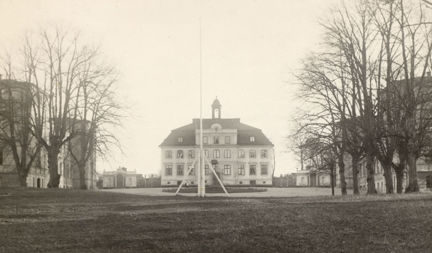 Parken med Frimurarbarnhuset i Kristineberg i bakgrunden, november 1926
