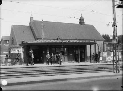 Den gamla spårvägshållplatsen i Alvik låg på Gustavslundsvägen utanför fastigheten Biografen 1.