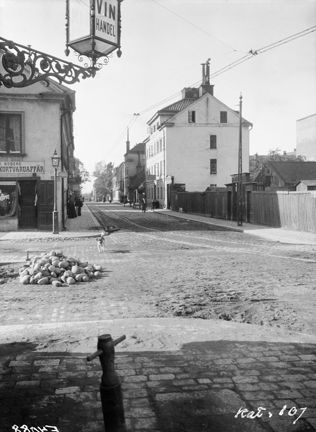 Folkungagatan 21 västerut från Nytorgsgatan, rivet 1906. Nuvarande Folkungagatan 81.