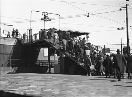 Station Slussen. Ombyggnad till tunnelbana.Trappa ner från Södermalmstorg.
