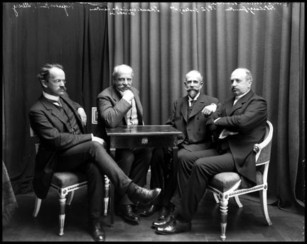 Grupporträtt med bl.a. fr.v. professor Knut Kjellberg, bankmannen Jonas Kjellberg