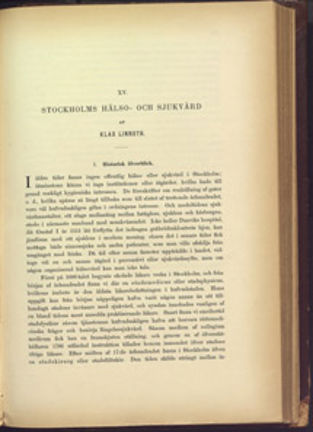 Hur såg Stockholms hälso- och sjukvård ut under slutet av 1800-talet? I boken Stockholm : Sveriges hufvudstad skildrad med anledning af allmänna konst- och industriutställningen 1897 finns ett kapitel om tidens hälso- och sjukvårdssituation. Här kan man läsa om stadens läkare, sjukhus, dödsorsaker och mycket mer – för att inte glömma köttbesiktningsbyråerna och Stockholms mjölkkommission. Tänk på att det här inte är en historiebok - det är en bok från 1897 som beskriver samtiden. När historien beskrivs i boken gäller det en tid före 1800-talets slut. En hel del fina foton och teckningar ingår i kapitlet. 101 sidor. Innehåll 1. Historisk öfverblick. 2. Kommunens hälso- och sjukvårdsanordningar. (Hälsopolisen, Köttbesikningsbyråerna, Vaccinationsväsendet, Förlossningshjälp, Sinnessjukas vård m.m.) 3. Af kommunen oberoende hälso- och sjukvård i Stockholm. (Medicinalpersonalen, Hygieniska museet, Stockholms mjölkkommission, Badanstalter, Apoteksväsendet, Sjukkassor m.m.) 4. Beskrifning öfver sjukhus och vårdanstalter (Serafimerlasarettet, Sabbatsbergs sjukhus m.m.) 5. Om allmänna hälsotillståndet i Stockholm. (Uppgifter om bl.a. antal födda och döda, sjukdomar och dödsorsaker.)