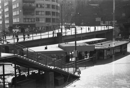 Station Slussen. Ombyggnad till tunnelbana. Nedgång från Södermalmstorg.