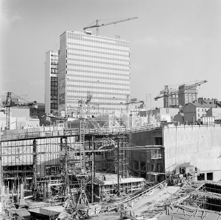 Byggnadsarbeten för tredje hötorgshuset och Sergelgatan