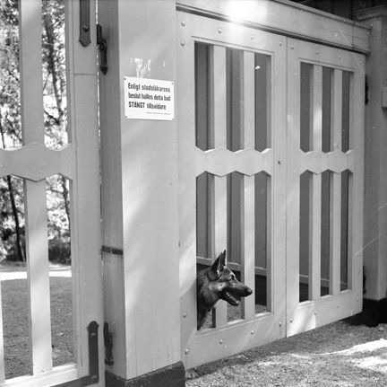 Solviksbadet. Grinden till det stängda badet (p.g.a. att paratyfusvirus påträffats)