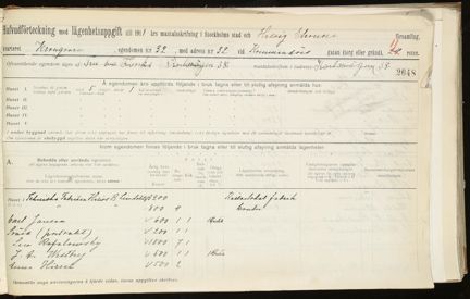 Mantalsskrivning och bostadsräkning, huvudförteckning över fastigheten Kronkvarnen 32 år 1911