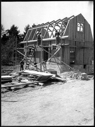 Husbygge i kvarteret Skåpet 6 i Olovslunds småstugeområde