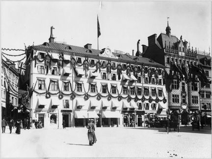 Gustav Adolfs torg år 1905. Hotell Bellevue och Hotell Germania.