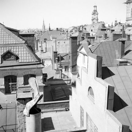 Perspektiv över hustaken i kv. Typhon. Kornhamnstorg 49 t.v