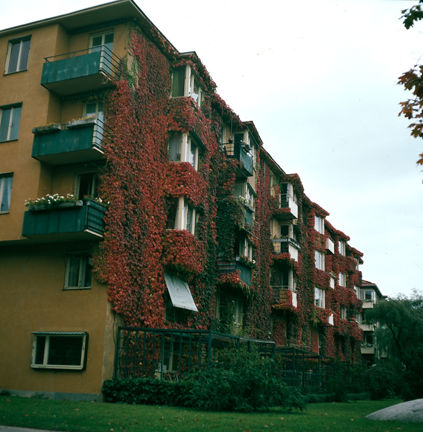 Husfasad med vildvin. Brantingsgatan 46-52, gårdssidan
