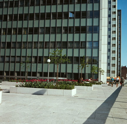 Från takterrassen vid andra Hötorgshuset söderut mot det tredje, fjärde och femte