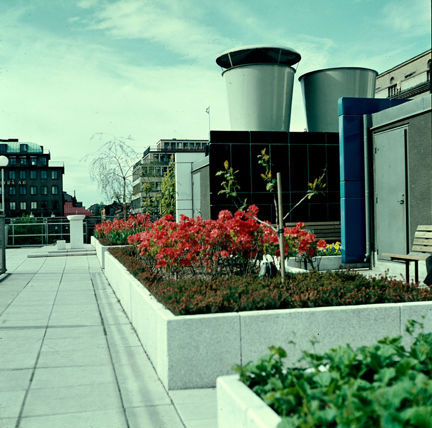 Planteringar på takterrassen vid Hötorget. Vy åt norr