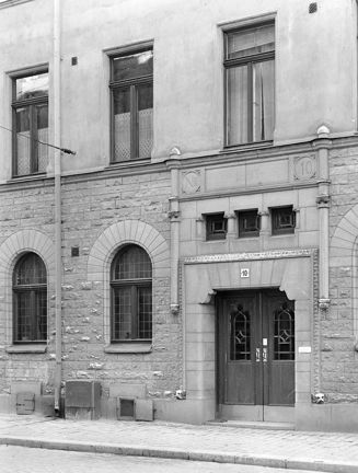 Engelbrektsgatan 10. Del av fasaden med portalen