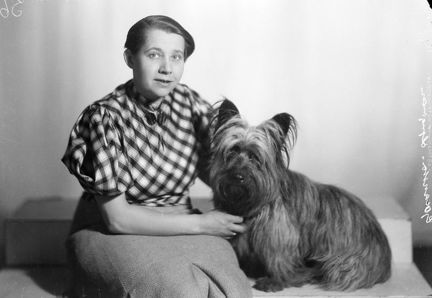 Porträtt av Göransson-Ljungman (kvinna) med sin hund