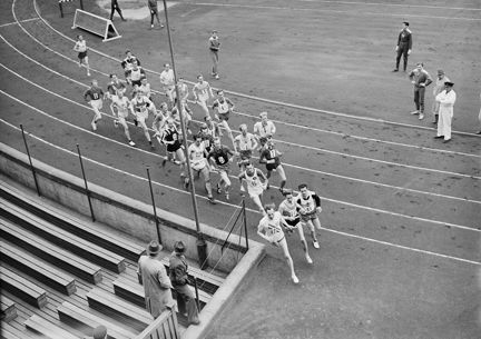 Stadion. Löpare i Stadsloppet på väg ut från Stadion