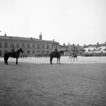 Svea Artilleriregemente. Avtackning. Ryttare i förgrunden