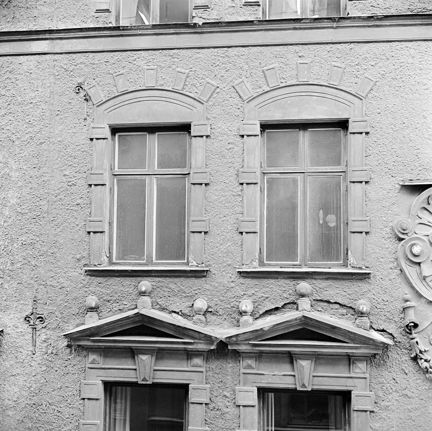 Herkulesgatan 18 (hörnet vid Drottninggatan). Detaljer på södra gaveln. Fönsteraxlarna, vån 1 o 2 tr