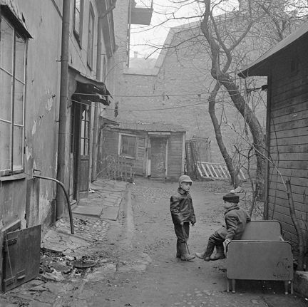 Tjärhovsgatan 32. Gårdsbild med barn