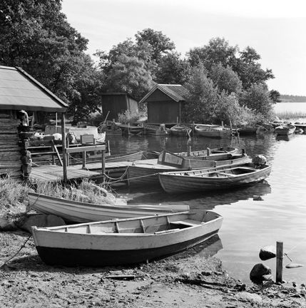 Fiskeläge i Rävsnäs. Förtöjda roddbåtar