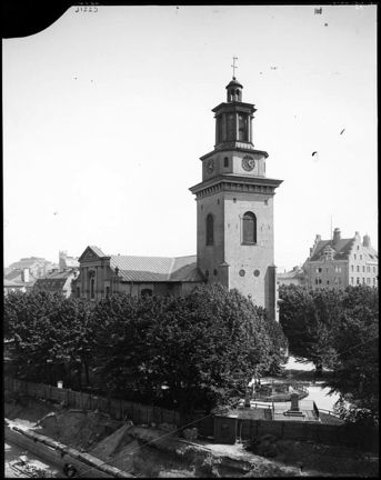 Maria Magdalena Kyrka västerifrån. Hornsgatan längst till vänster