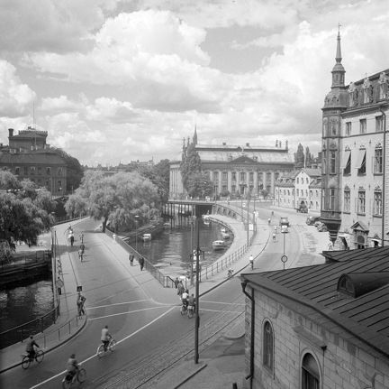 Munkbron norrut vid Riddarholmskanalen. Riddarhuset i fonden
