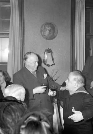 Evert Taube hyllas på Gyllene Freden, Österlånggatan 51 i samband med avtäckningen av en Taubemedaljong