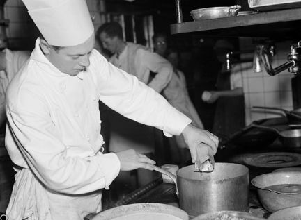 En kock lagar till vakuumtorkad föda, som ska användas av militärer