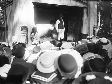 En bondkomiker uppträder i Stockholms folkpark i Ingentingskogen, Solna