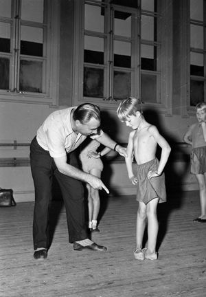 Gustav Adolfs Torg 2, Operan. Uttagning av pojkar, förmodligen till balettskolan. Balettmästare Albert Kuzlovskij instruerar 8-årige Claes Rudbeck