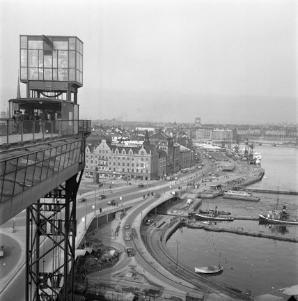Utsikt mot Skeppsbron, Slussplan, Franska Bukten. I fögrunden Katarinahissen