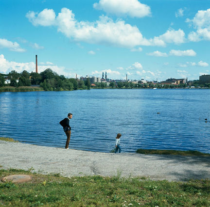 Liljeholmen. Sjön Trekantens sydvästra strand. Vy åt nordost. I fonden Högalidskyrkan