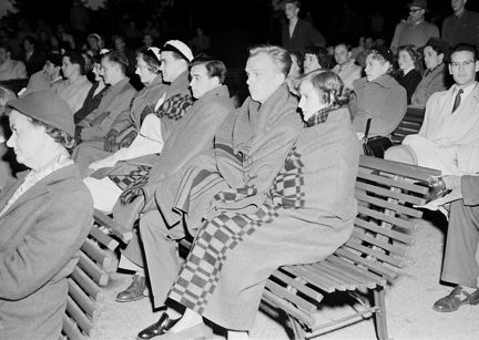 Skansen. Publik sitter inlindade i filter och tittar på Musikskolans premiär