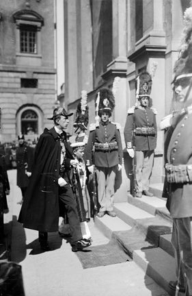 Trångsund 1, Storkyrkans entré. Prins Wilhelm på väg in i kyrkan vid kronprinsessan Margaretas begravning