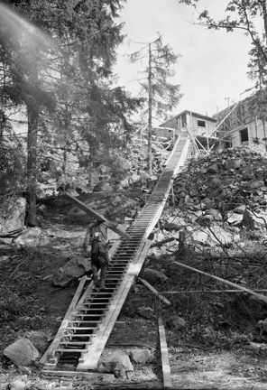 Trätrappa med 175 steg som leder upp till nybyggena på Filipstadsbacken