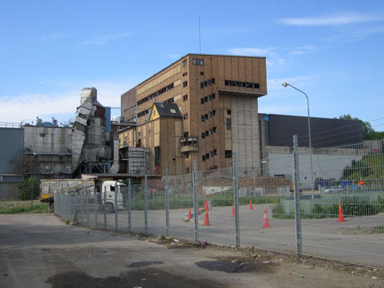 Den gamla sopförbränningsbyggnaden vid Lövsta, från öster