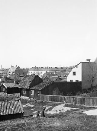 Utsikt från Sofia kyrka mot gårdssidan av Bergsprängargränd 6. Nuv. kv. Flintan