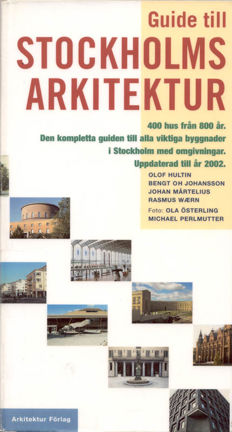 Guiden innehåller 372 intressanta byggnader i Stockholm med omgivningar och tips om ytterligare nästan 200 sevärda hus och platser. Byggnaderna presenteras med kort text, färgfoto och oftast en liten ritning. Boken avslutas med en kort stadsbyggnadshistoria, äldre Stockholmskartor och flera register. 319 sidor.