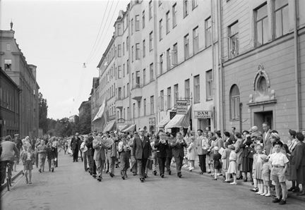 Maria Skolgata västerut. Parad vid årsavslutningen i Maria folkskola