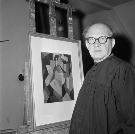 Porträtt av konstnären Sixten Lundbohm vid en tavla