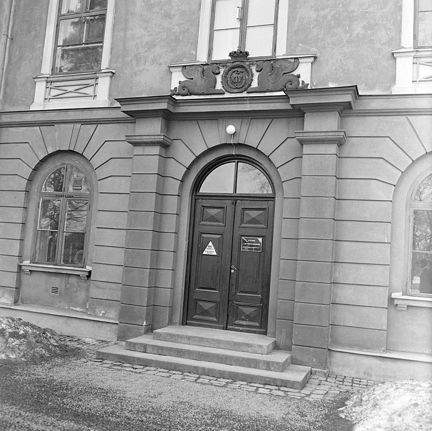 Experimentalfältet, Kungliga Lantbruksakademiens. Huvudbyggnadens portal. Lantbrukslaboratoriet från 1837-38 efter ritning av Fredrik Blom
