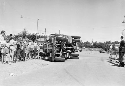 Korsningen Färjestadsvägen/Bergslagsvägen. En lastbil har vält