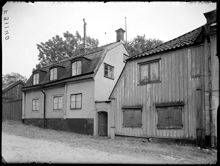 Mäster Mikaels Gata sedd mot öster. T.v. Mäster Mikaels Gata 5