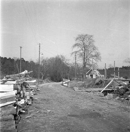 Svärdlångsvägen 14, Årsta gård. En allé har huggits ner inför anläggning av avloppsledning