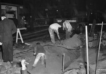 Vägarbete mellan Regeringsgatan 71 och 58 efter översvämning i källarlokaler i Regeringsgatan 58