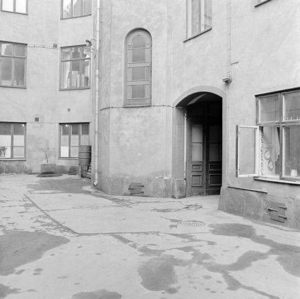 Herkulesgatan 24 innan rivning. Innergårdens östra del och inkörsporten till garaget från gatan