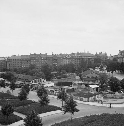 Kvarteret Fältöversten, kåkområdet Gropen. Vy mot kvarteret Trumslagaren/Värtavägen