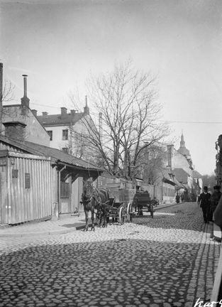 Södermannagatan norrut från Åsögatan med Katarina kyrka i fonden